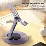 tout en aluminium rotatif à 360 °, élévateur réglable, support de tablette portable adapté à tous les téléphones mobiles, tablettes, pour IOS/Android – idéal pour le travail de bureau, regarder des drames, des cours en ligne, regarder la télévision et la diffusion en direct.